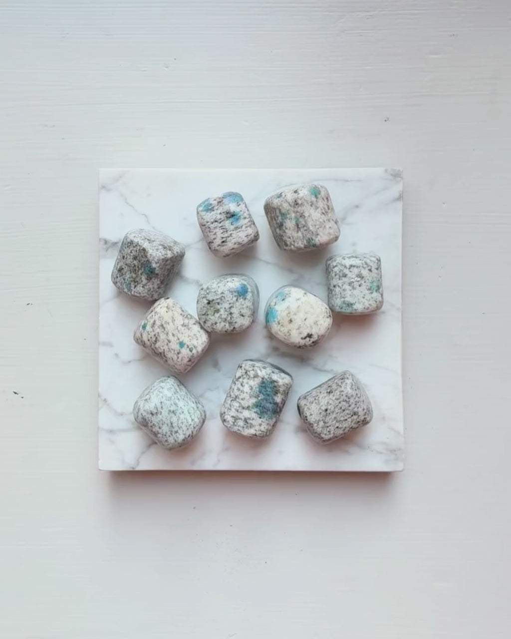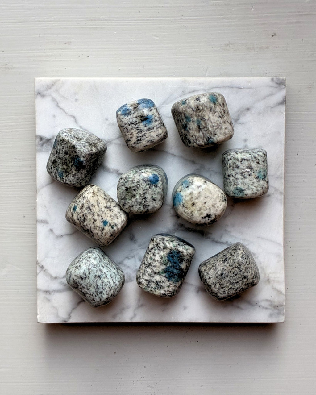 Om: K2 är kristallen för dig som vill ha både fötterna på jorden och huvudet bland stjärnorna! ✨ Den består av granit med naturliga inslag av djupt blå azurit – som små universum fångade i sten. I trumlad form får K2 en mjuk, len känsla som gör den extra härlig att bära nära kroppen.