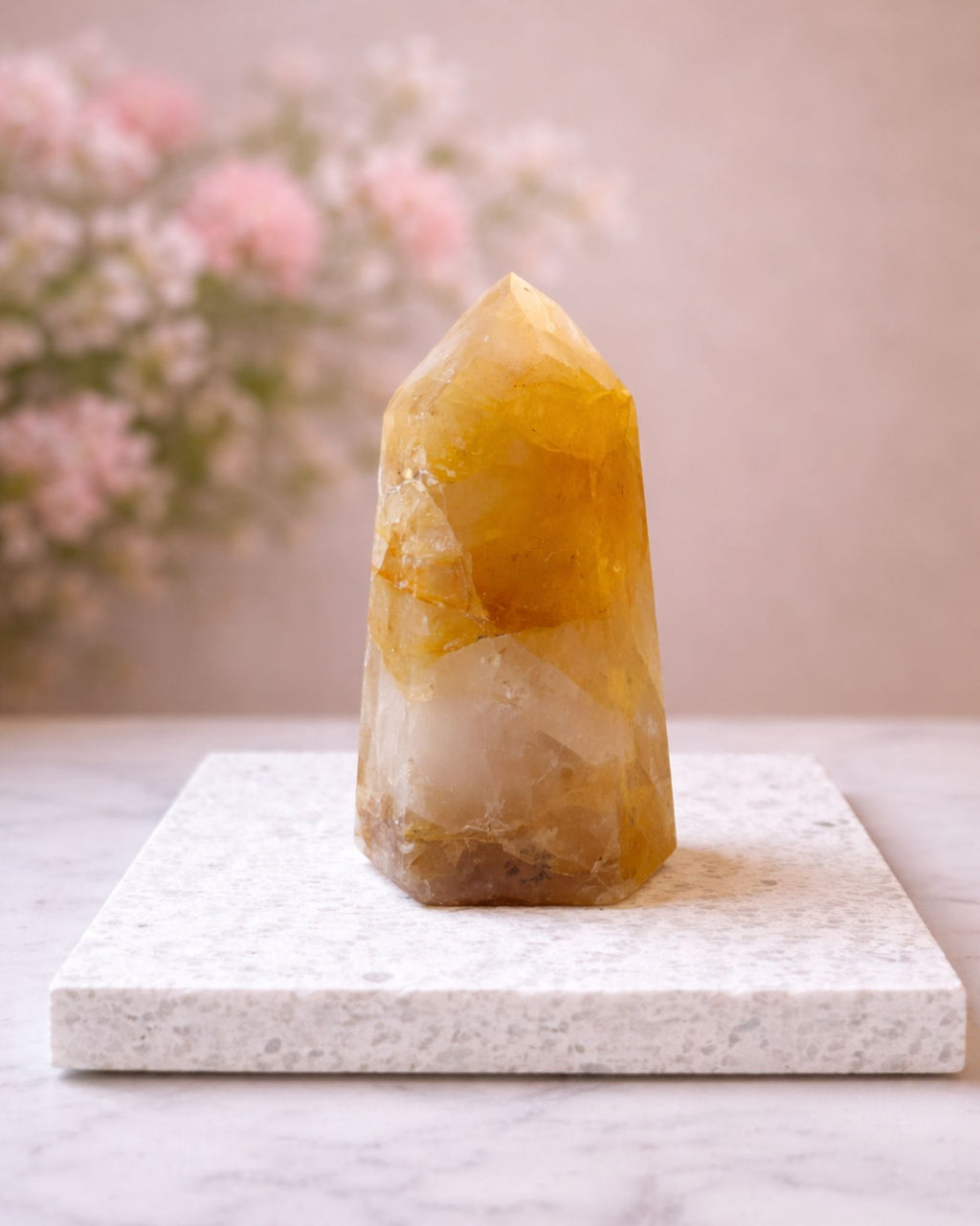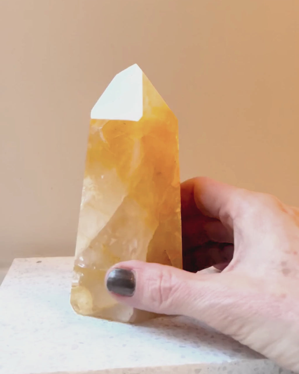 Hur du använder den: Denna kristallform är en vacker inredningsdetalj, placera den på ditt skrivbord, altare, sovrum, vart du känner att den passar bästa hemma hos dig! Du kan även prova att meditera tillsammans med din spets! Hitta en bekväm position, ha en Golden Healer i din hand. Slut dina ögon och andas in genom näsan och ut genom munnen. När tankarna börjar vandra iväg, kom tillbaka till känslan av att hålla din Golden Healer i handen. Föreställ dig att din Golden Healer lugnar ditt mind, hjälper dig släppa taget om vissa tankar och balanserar dig så du kan komma tillbaka till ditt true self.