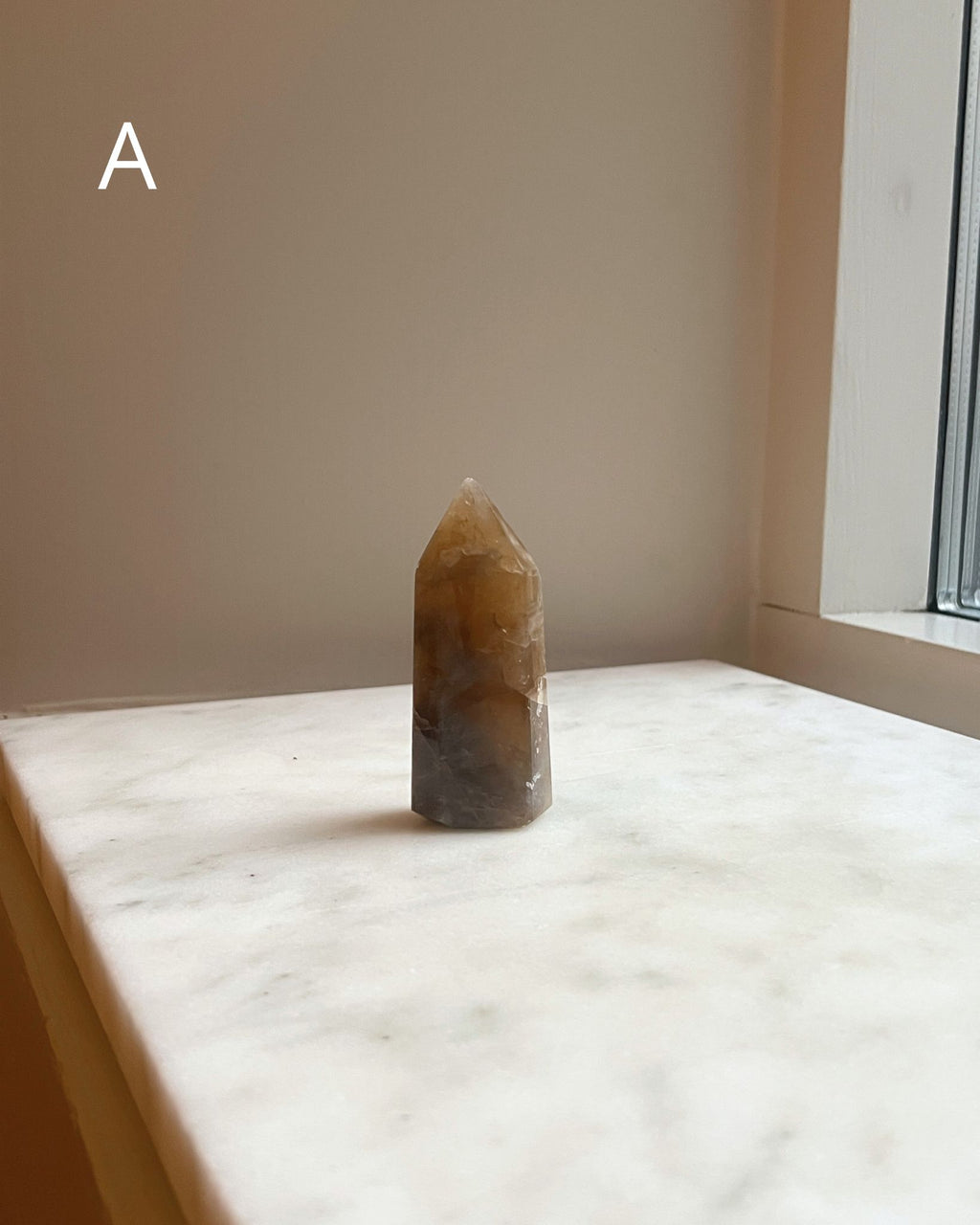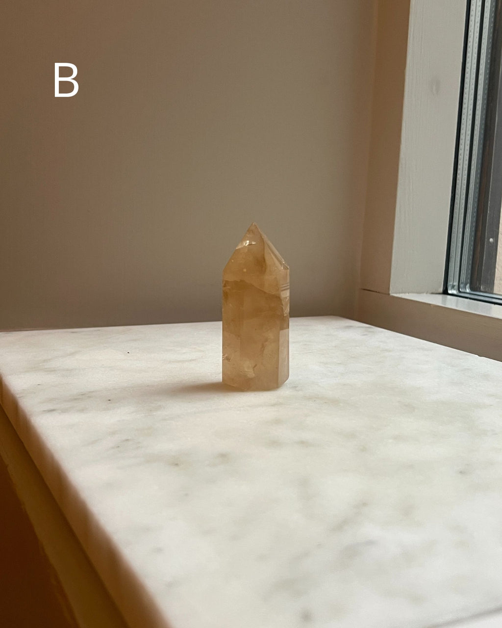 Om: Citrinen är kristallvärldens egen lilla C-vitamin och är fylld av ren POWER! Den här kristallen sägs fungera som din privata lilla hejarklack och boosta dig med energi, självförtroende och happy vibes. Citrinen är också en riktig abundance-kristall som sägs kunna attrahera både framgång och cashflow – en kristall ALLA behöver i sitt liv! De här tornen är av naturlig citrin.
